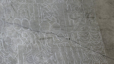 Presentando “senza soluzione di continuità”, Barbara Rossi scrive: “Alessio Santoni presenta alcune delle sue opere più recenti che seguono la scia di un tema da tempo indagato, quello del di-stacco, inteso come dicotomia fra il positivo e il negativo, fra la traccia che rimanda e ciò che è – o è stato – davvero. Non tradisce le sue origini l’artista marchigiano che proprio dagli scarti della lavorazione della pelle per le calzature parte per creare i propri lavori. E così la più tradizionale stampa calcografica trova la sua matrice nella lastra di zinco vergata quasi fino all’inverosimile dal coltello dei tagliatori di pellame e l’istallazione site specific realizzata sul pavimento ricalca, come una meticolosa scena del crimine, la sagoma di decine di ritagli della stessa pelle. Una traccia destinata ad essere corrosa dal tempo e dai passi di chi sarà disposto a guardarla per trovare forme e stralci di ciò che è stato e trova ora nuovo significato.”