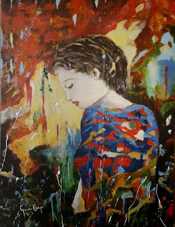 “Esser donna”, dipinta con colori acrilici su tela, è stata realizzata in occasione della scorsa giornata internazionale contro la violenza sulle donne. Ritrae una figura femminile assorta nei suoi pensieri. L’artista affida la trasposizione su tela di tali sentimenti ed emozioni ai veloci colpi di pennello, agli spruzzi di colore e alle tinte accese che “illuminano” lo sfondo scuro, aprendo un varco che consente allo spettatore di cogliere l’anima e l’essenza del soggetto rappresentato.